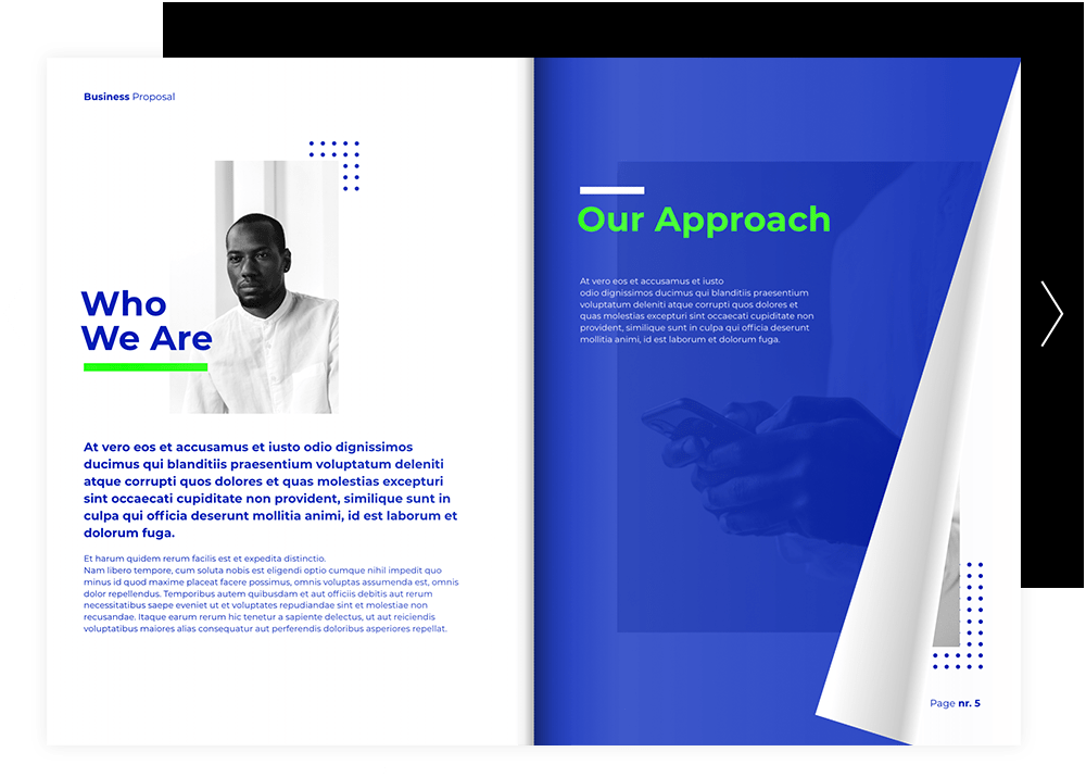 This editable business brochure design for PDF download is a great starting point for exploring Flipsnacks Design Studio. Its free and easy to use. Compared with FlipSnack Flip HTML5 is user-friendly flip book maker for creating digital publication.