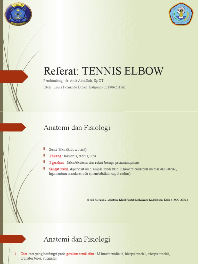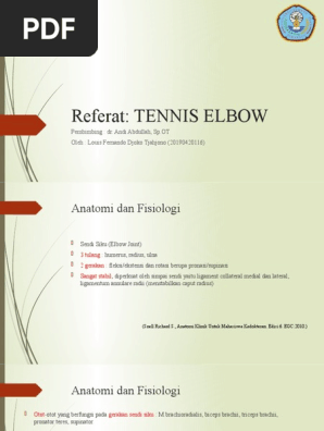 ARTHROSCOPY OF THE ELBOW Moderator. Out of a total of 170 injuries recorded knee 39 275 and. Tennis elbow lateral epicondylitis -orthoinfo - aaos - Free download as PDF File pdf Text File txt or read online for free.
