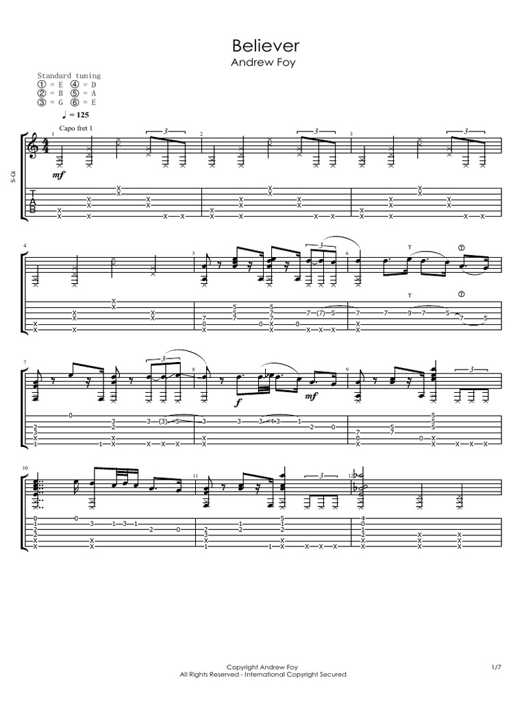 57700 views added to favorites 1150 times. Print and download Andrew Foy Believer Guitar TAB. Musicnotes features the worlds largest online digital sheet music catalogue with over 300000 arrangements available to print and play instantly.